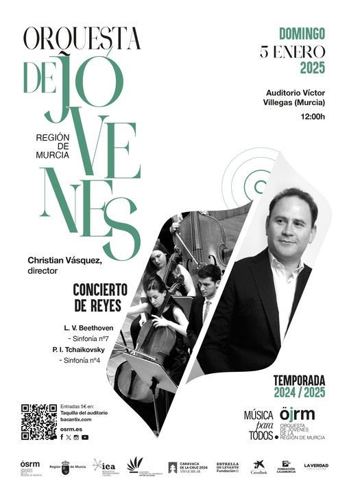 El concierto del domingo 5 de enero, con Vásquez a la batuta, comenzará a las 12 horas. Las entradas, al precio de 5 euros, se pueden comprar en la taquilla del Auditorio Víctor Villegas (de lunes a viernes, de 9 a 14 horas, y desde dos horas antes del inicio del concierto), así como a través de la página web del Auditorio y Centro de Congresos Víctor Villegas.