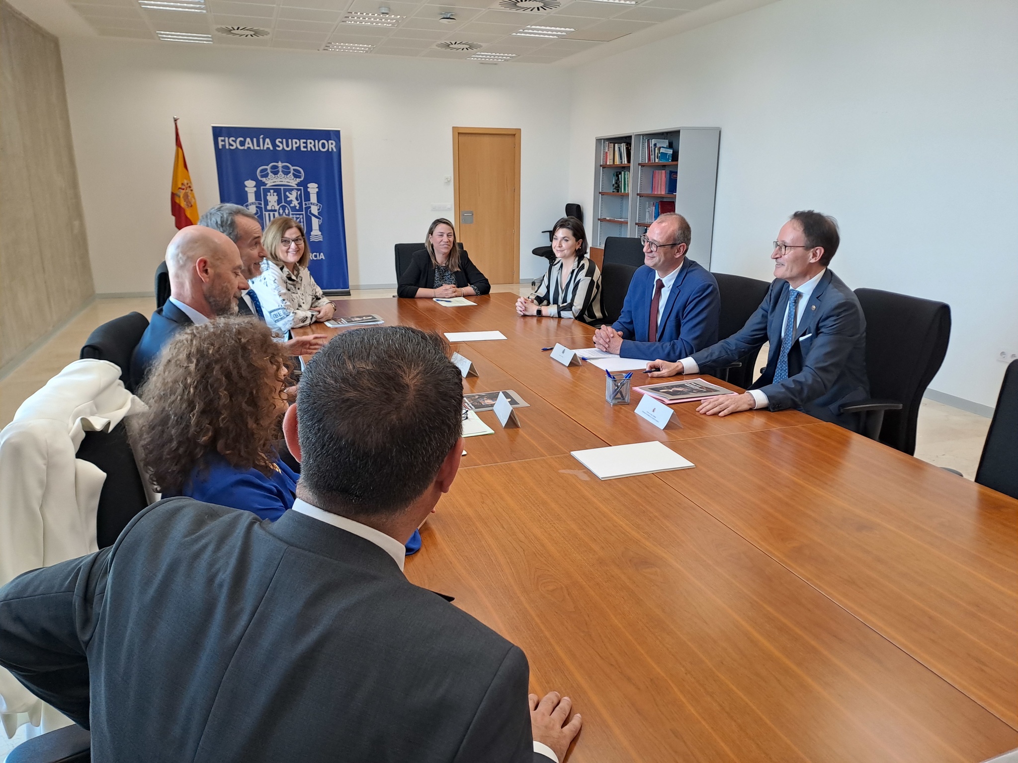 El consejero de Educación, Formación Profesional y Empleo, Víctor Marín, mantuvo hoy un encuentro con el Fiscal Superior de la Región de Murcia, José Luis Díaz Manzanera, y con el fiscal de la Sala de Seguridad y Salud en el Trabajo, Ángel Javier Muñoz, con el fin de avanzar en la firma de un convenio que permita intercambiar información entre las dos instituciones en materia de seguridad y salud laboral y prevención de riesgos con el objetivo de reducir la siniestralidad en este ámbito.