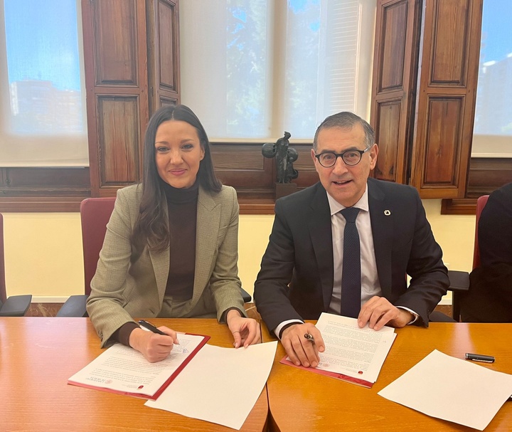 Momento de la firma del convenio por la consejera Carmen Conesa y el rector José Luján.