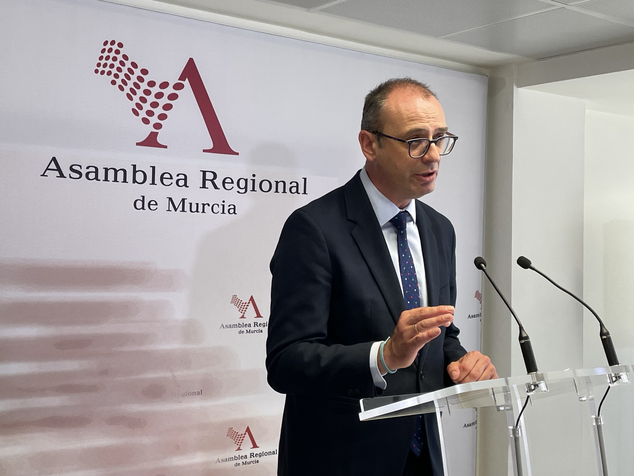 El consejero de Educación, Formación Profesional y Empleo, Víctor Marín, durante su comparecencia en sesión plenaria de la Asamblea Regional