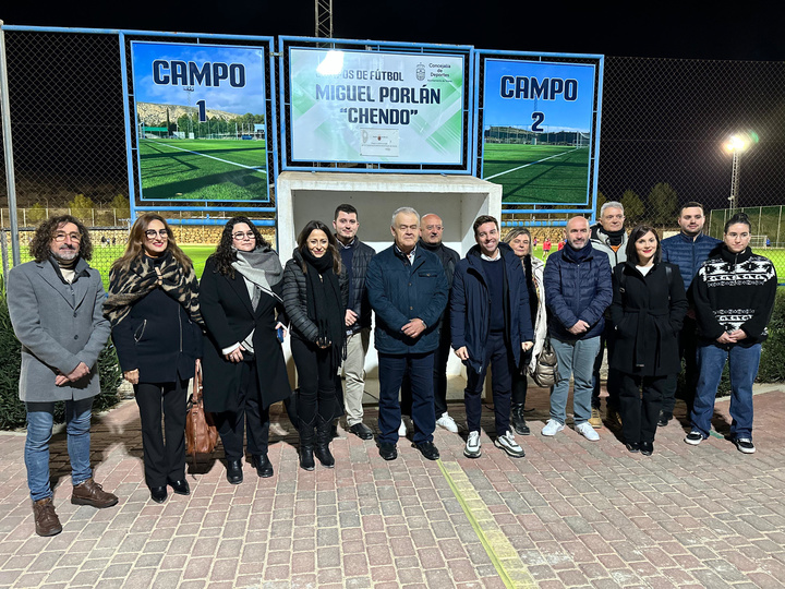 El director general de Deportes, Francisco Javier Sánchez, visitó ayer la Ciudad Deportiva, junto con el alcalde del municipio, Juan Pagán, con ocasión de la reinauguración tras las mejoras realizadas. Tras el protocolario corte de cinta, dos equipos de las entidades que más utilizan las instalaciones, Olímpico de Totana y un combinado de la liga local de aficionados, disputaron un partido de fútbol amistoso. El Gobierno regional ha financiado las obras con más de 133.000 euros, mientras que el Ayuntamiento de Totana ha aportado el resto.