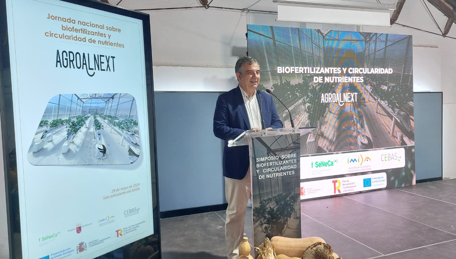 El consejero de Medio Ambiente, Universidades, Investigación y Mar Menor, Juan María Vázquez, durante la inauguración de la jornada nacional Agroalnext, sobre fertilizantes de nutrientes