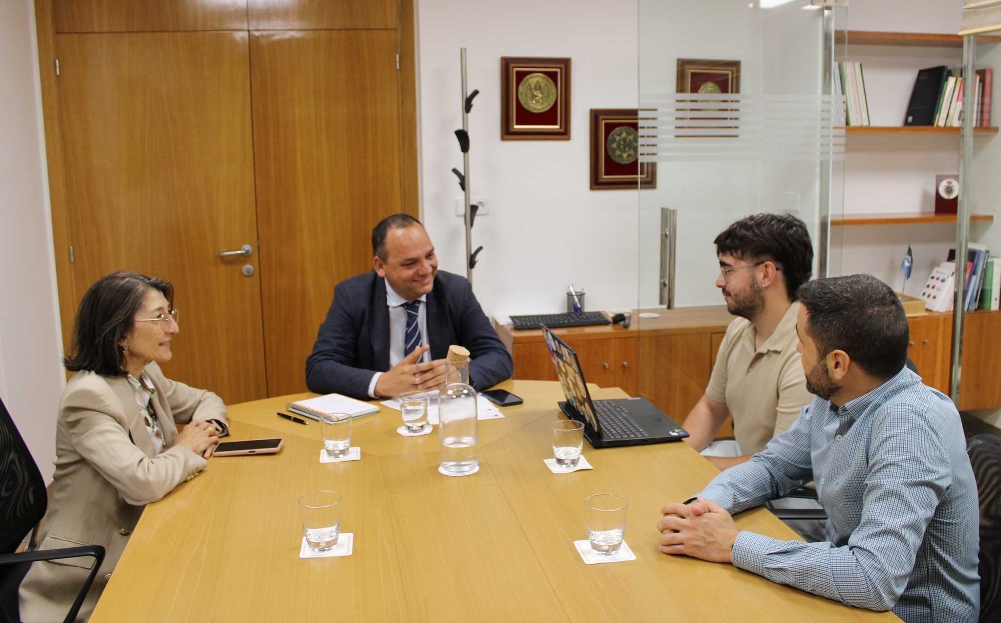 El director general de Universidades e Investigación, Antonio Caballero, durante la reunión con la vicerrectora de Ciencias De La Salud de la Universidad de Murcia, Paloma Sobrado, el presidente del Consejo de Estudiantes de la UMU, Miguel García, y el coordinador de estudiantes de la UMU, Diego García Ayuso