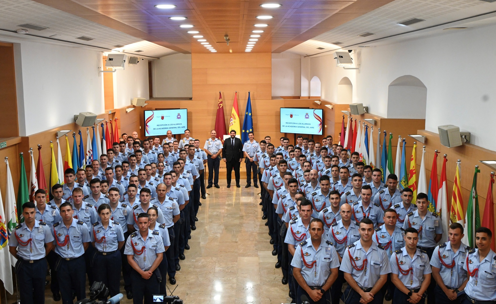 El presidente de la Comunidad, Fernando López Miras, recibió hoy a los alumnos que han concluido su periodo de formación en la Academia General del Aire (AGA) de San Javier y resaltó la necesidad de “contar con unas Fuerzas Armadas preparadas y con los recursos necesarios para poder cumplir con su misión”.