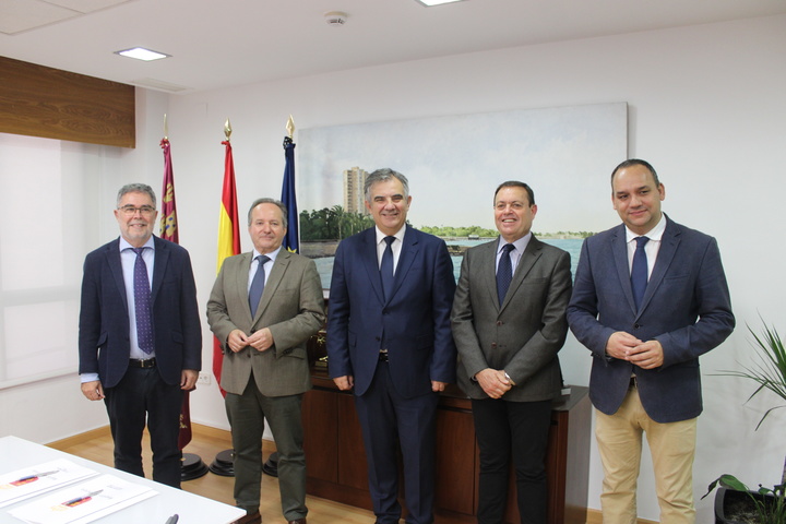 En el acto de la firma de adhesión participaron el consejero de Medio Ambiente, Universidades, Investigación y Mar Menor, Juan María Vázquez; el presidente de FUEM, Antonio Ballester; y el director de la cátedra Emuri, José Luis Munuera.
