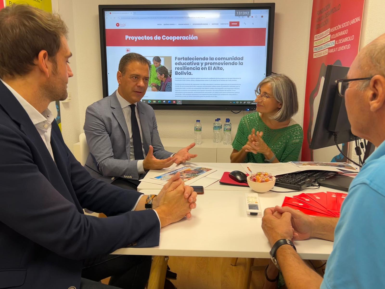 Reunión mantenida hoy entre el consejero de Presidencia, Portavocía, Acción Exterior y Emergencias, Marcos Ortuño, y la directora de Fundación FADE, María Solís, con la asistencia también del director general de Acción Exterior y Cooperación, Juan José Almela