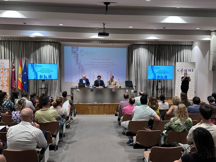 La Consejería de Fomento e Infraestructuras continúa impulsando el desarrollo del nuevo Reglamento de Accesibilidad Universal con la celebración de una jornada técnica para reforzar la implantación de esta normativa, que sitúa a la Región de Murcia a la vanguardia nacional en materia de accesibilidad.