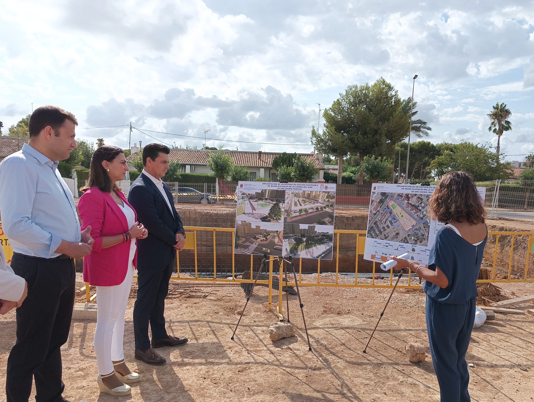 Imagen de la consejera Sara Rubira junto al alcalde de San Javier, José Miguel Luengo, en las obras del sistema de drenaje sostenible que se está construyendo en el municipio
