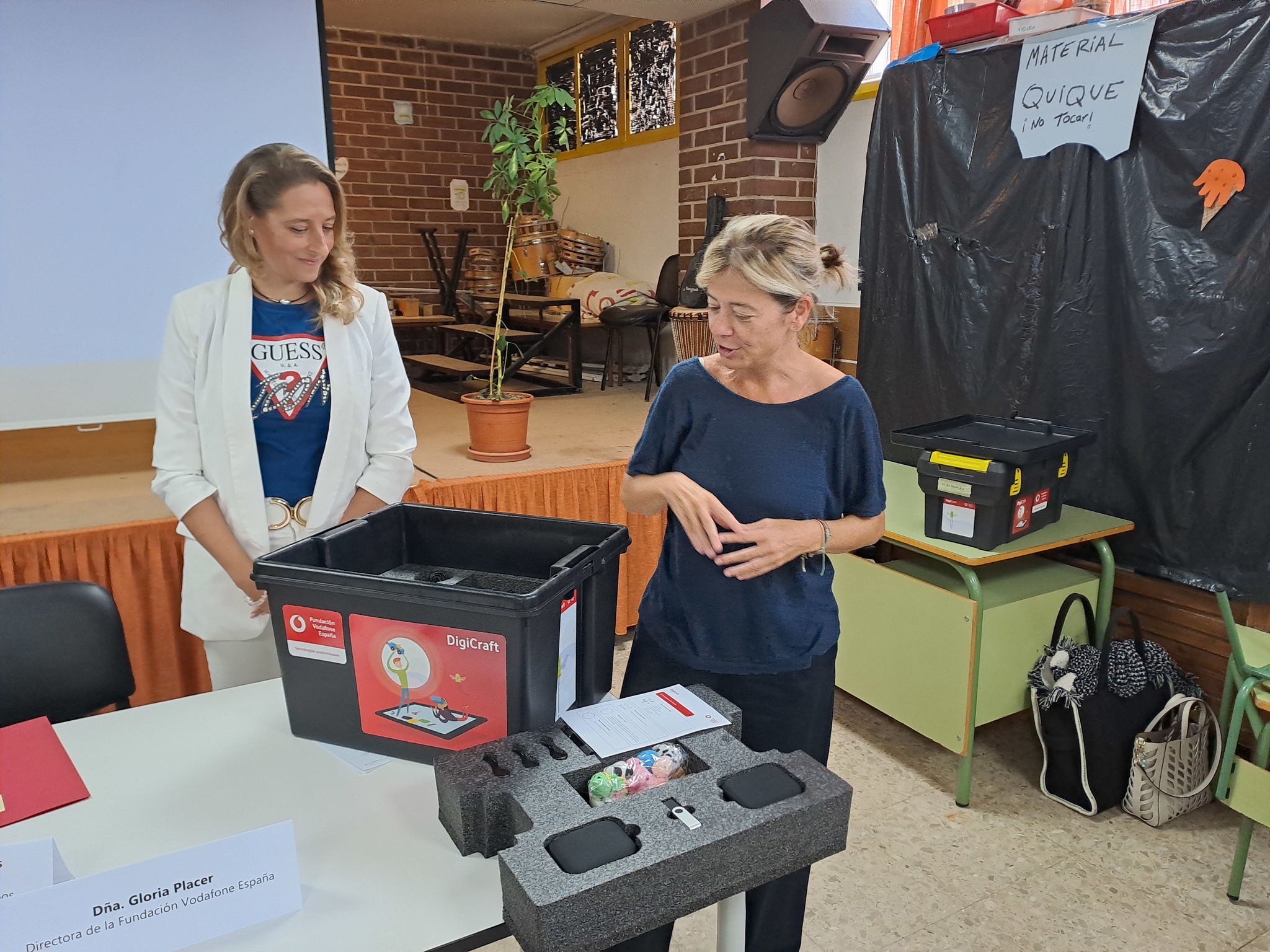 La directora general de Recursos Humanos, Planificación Educativa e Innovación, Carmen Balsas, y la directora de la Fundación Vodafone, Gloria Placer, distribuyeron hoy los kits del programa DigiCraft en el colegio Federico de Arce de Murcia