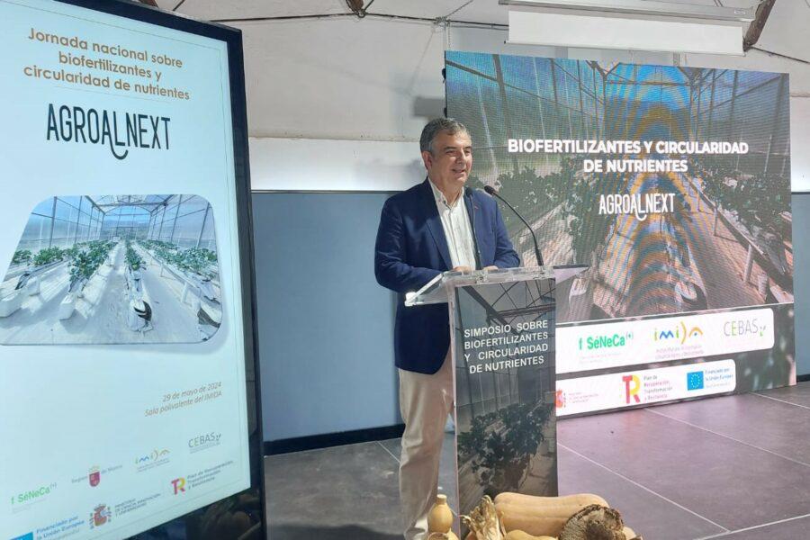 Imagen de archivo del consejero de Medio Ambiente, Universidades, Investigación y Mar Menor, Juan María Vázquez, durante una de las jornadas de exposición del proyecto Agroalnext celebradas en la Región