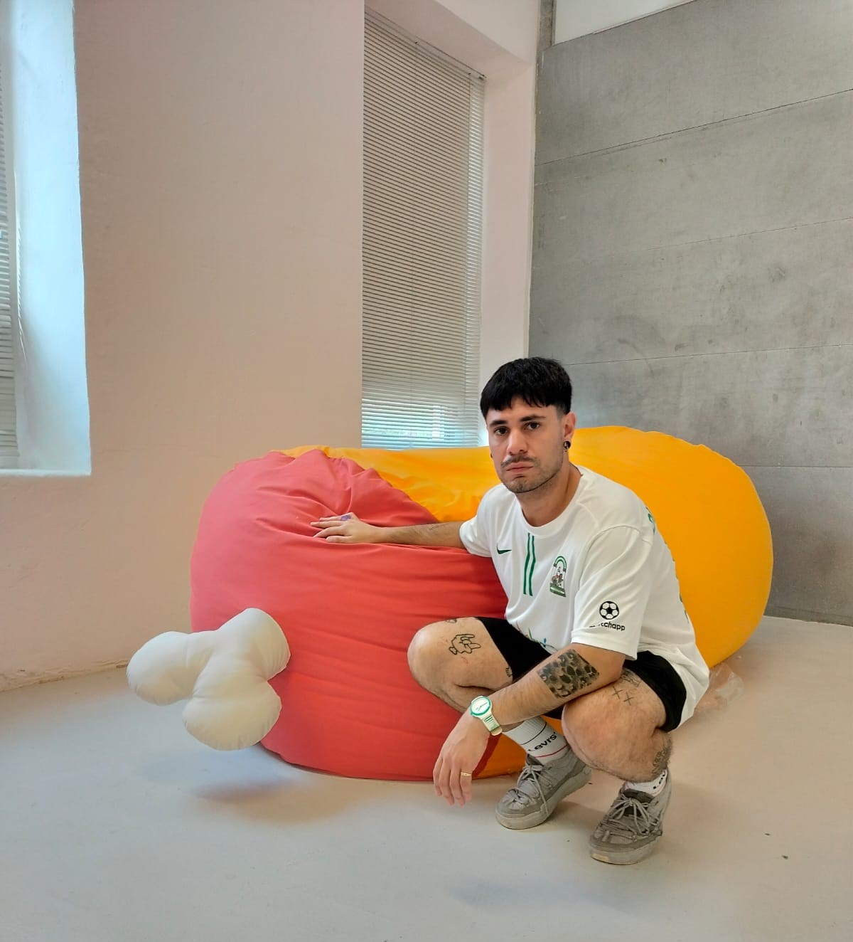 Imagen de Diego Balazs en el montaje de su exposición en la Sala de Máquinas del Centro Párraga