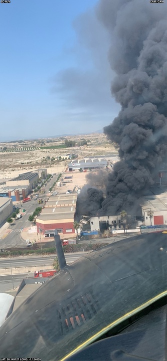 El Centro de Coordinación de Emergencias ha activado el sistema esAlert para advertir a la población que se encuentra en el polígono industrial de Fortuna para que se confine y evite su exposición a la nube tóxica que ha originado un incendio declarado en una nave dedicada al reciclaje de plásticos.