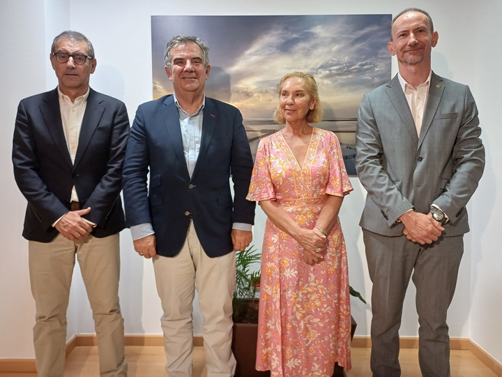 El consejero de Medio Ambiente, Universidades, Investigación y Mar Menor, Juan María Vázquez, junto con la rectora de la Universidad Católica San Antonio (UCAM), Josefina García, el rector de la Universidad de Murcia (UMU), José Luján, y el rector de la Universidad Politécnica de Cartagena, Mathieu Kessler, en una imagen de archivo.