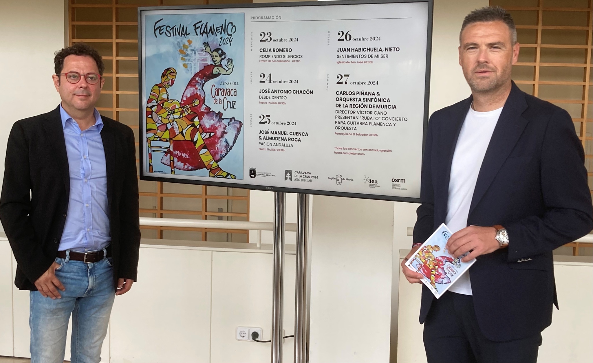 Imagen del director general del Instituto de las Industrias Culturales y las Artes, Manuel Cebrián, y en el alcalde de Caravaca de la Cruz, Jose Francisco García, en la presentación de la primera edición del Festival de Flamenco