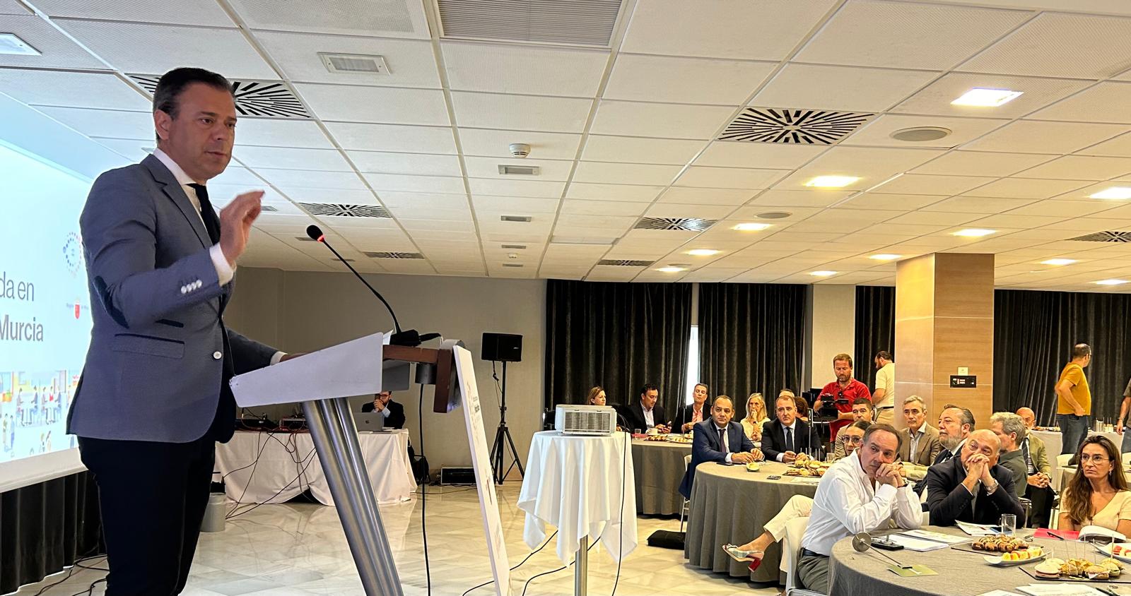 El consejero de Presidencia, Portavocía, Acción Exterior y Emergencias, Marcos Ortuño, interviene en el acto de presentación del informe