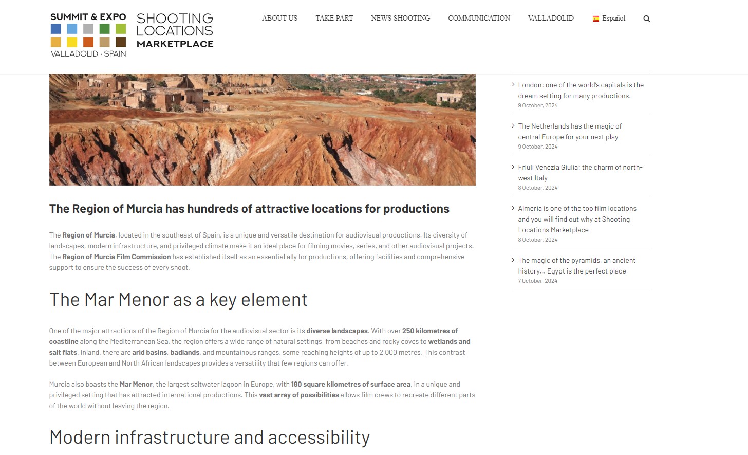 Imagen de la apartado dela Región de Murcia Film Commission en la web del evento 'Shooting Locations Marketplace'