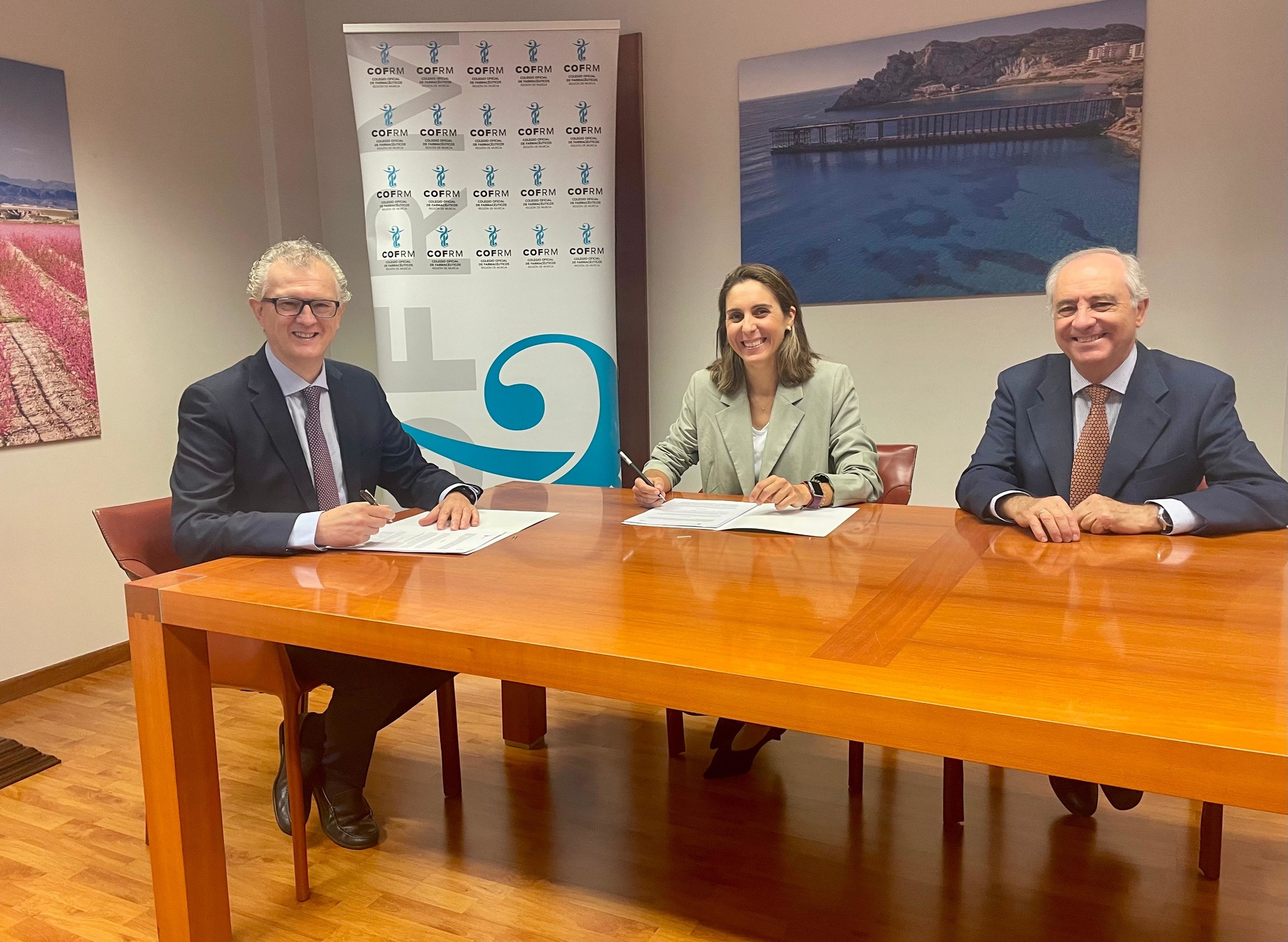 El consejero de Salud, Juan José Pedreño, junto a la presidenta del Colegio Oficial de Farmacéuticos de la Región de Murcia, Paula Payá, y el director general de Farmacia, Planificación e Investigación, Jesús Cañavate