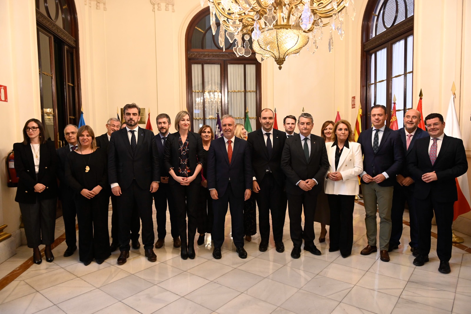 Los consejeros de Presidencia de los gobiernos regionales, junto con el ministro de Política Territorial y Memoria Democrática, antes de iniciar la reunión