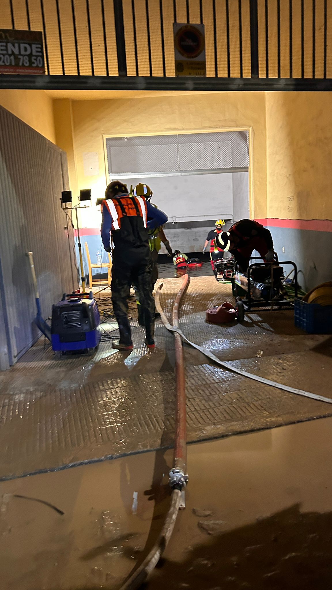 Voluntarios de Protección Civil de San Javier trabajan para recuperar la accesibilidad en un garaje de Paiporta