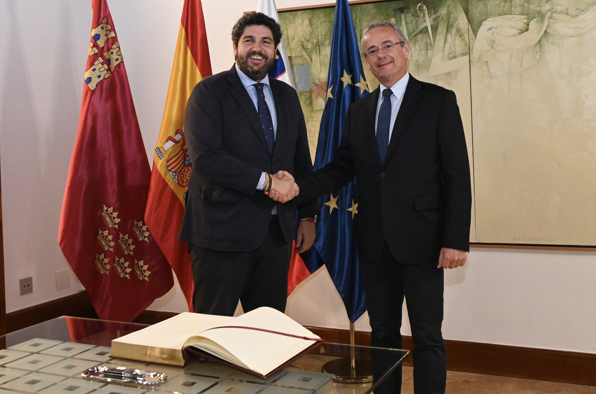 El presidente de la Comunidad, Fernando López Miras, recibe al embajador de Eslovenia en España, Robert Krmelj