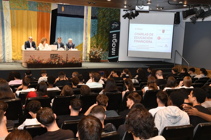 Cerca de 4.000 alumnos de tercero y cuarto de Educación Secundaria Obligatoria, Bachillerato y Formación Profesional se forman este año en educación financiera y emprendimiento a través del XI Ciclo de Charlas de Educación Financiera organizadas por la Consejería de Educación y Formación Profesional, el Colegio de Economistas de la Región de Murcia, la Fundación Cajamurcia y CaixaBank.