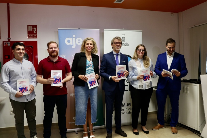 El titular de Hacienda realizó la presentación acompañado de la presidenta de la Asociación de Jóvenes Empresarios (AJE) de la Región, Almudena Abellán, a quien expuso algunas de las deducciones específicas que se pueden aplicar los jóvenes en la Región de Murcia.