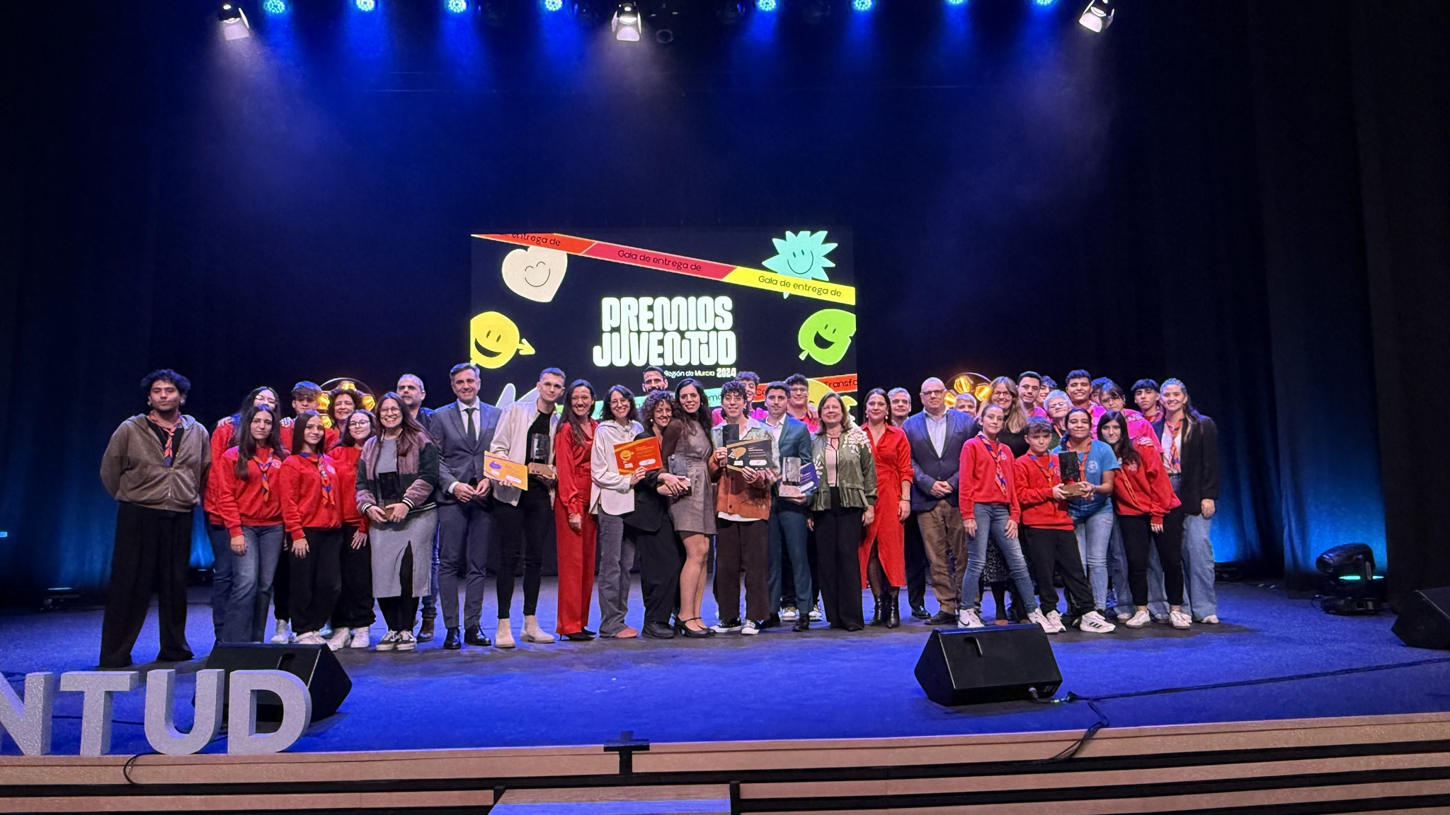 La consejera de Turismo, Cultura, Juventud y Deportes, Carmen Conesa, con los galardonados en los Premios Juventud de la Región de Murcia