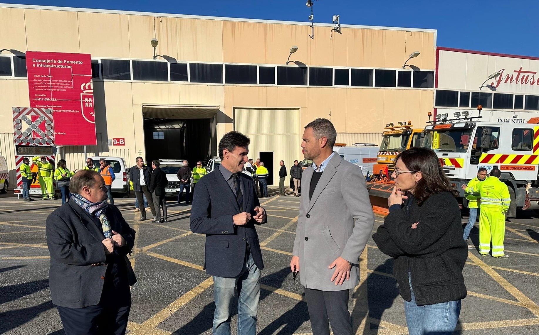 El consejero de Fomento e Infraestructuras, Jorge García Montoro, y el alcalde de Caravaca de la Cruz, José Francisco García Fernández, durante la presentación del Plan de Vialidad Invernal 2024-2025 de la red regional de carreteras.