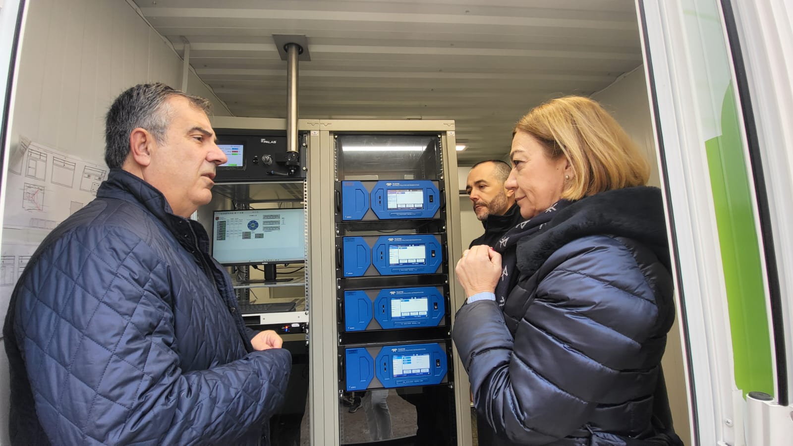 El consejero de Medio Ambiente, Universidades, Investigación y Mar Menor, Juan María Vázquez, junto con la alcaldesa de Jumilla, Severa González, tras la puesta en marcha de la nueva estación de Calidad del Aire del municipio
