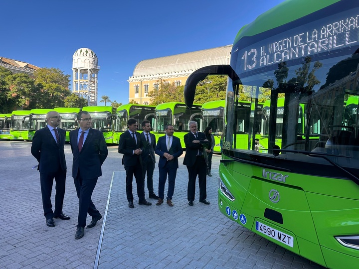 El consejero Jorge García Montoro resaltó este hito durante la presentación, junto al alcalde de Murcia, José Ballesta, de la nueva flota de vehículos Movibus cien por cien eléctrica que el Gobierno regional ha cedido al Ayuntamiento de Murcia. Estos vehículos realizarán los trayectos de las líneas que conectan Alcantarilla, Beniel y Santomera con la capital de la Región. Se trata de las concesiones regionales RMU-1 y RMU-2, que gestionará el municipio de Murcia mediante un decreto de delegación de competencias y pasarán a integrarse en la red de transporte urbano municipal.
