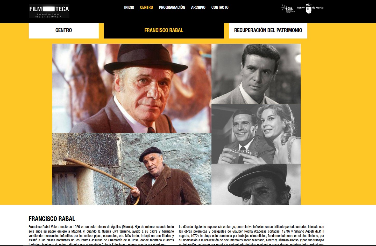 Imagen de la página web de la Filmoteca dedicada a Francisco Rabal