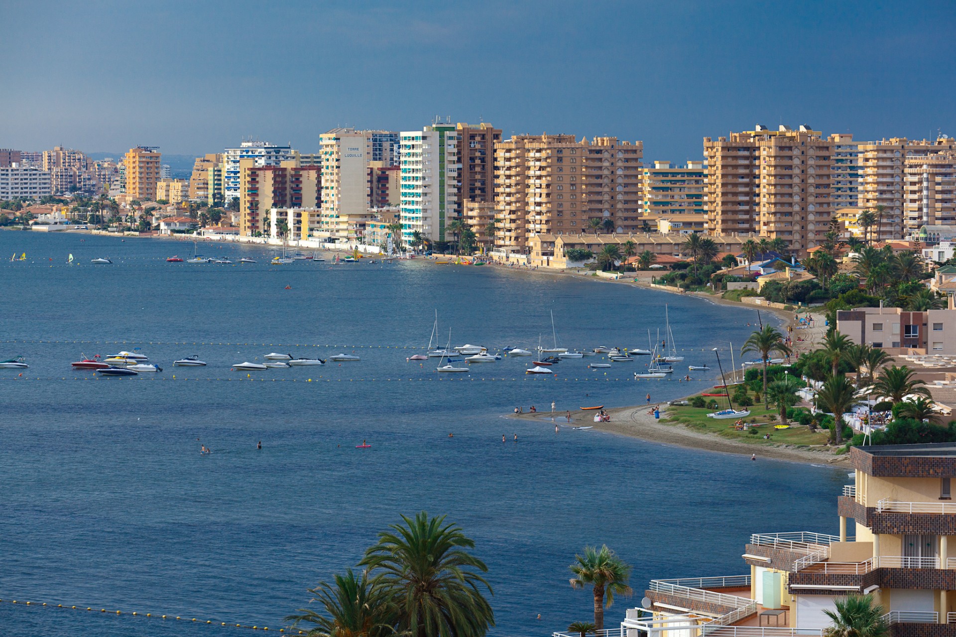 Vista de La Manga en la orilla del Mar Menor, lugar de concentración de empresas y actividades turísticas