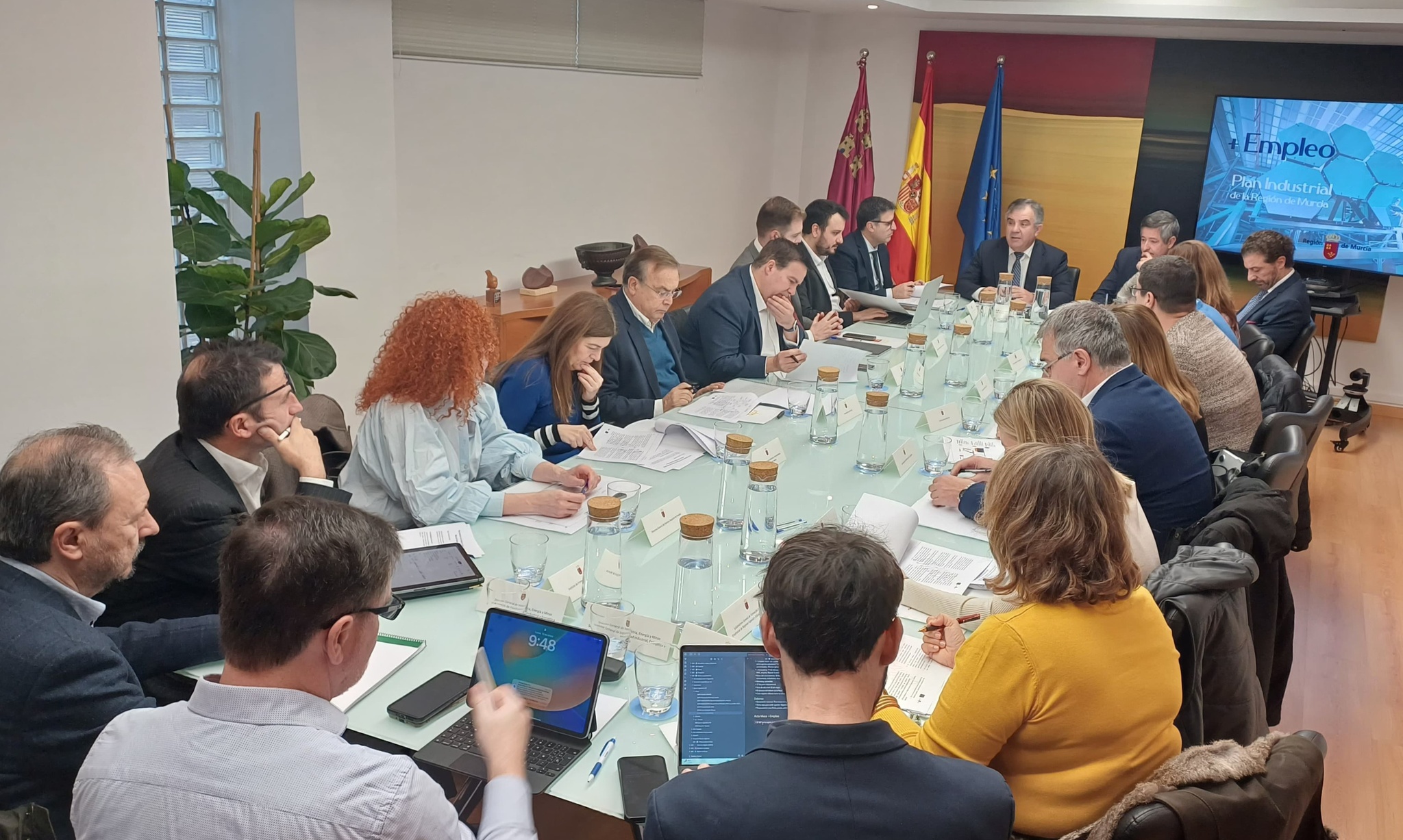 El consejero de Medio Ambiente, Universidades, Investigación y Mar Menor, Juan María Vázquez, durante la reunión del primer grupo de trabajo 'Más Empleo', para elaborar el Plan Industrial de la Región de Murcia.
