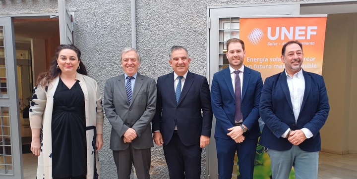 El Gobierno regional está plenamente comprometido con el impulso y el desarrollo de la energía agrovoltaica, según remarcó el consejero de Medio Ambiente, Universidades, Investigación y Mar Menor, Juan María Vázquez, durante la apertura de una jornada sobre esta tecnología, que compatibiliza y mejora el uso agrícola del suelo con la instalación de diversas configuraciones de paneles solares, organizada por la patronal fotovoltaica UNEF en la Universidad de Murcia.