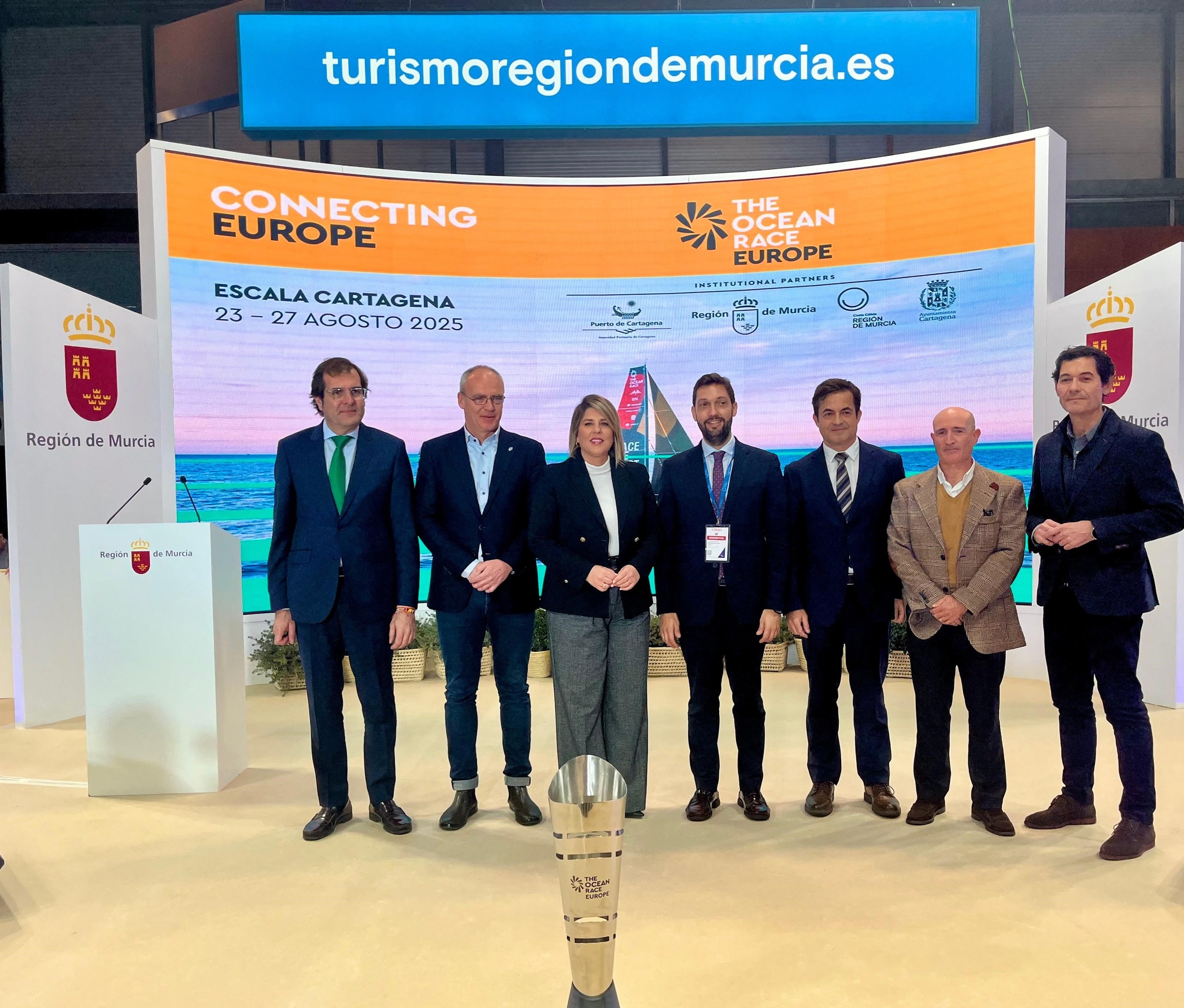 El director del Instituto de Turismo, Juan Francisco Martínez, con la alcaldesa de Cartagena, Noelia Arroyo, y participantes en el acto de presentación de la Ocean Race
