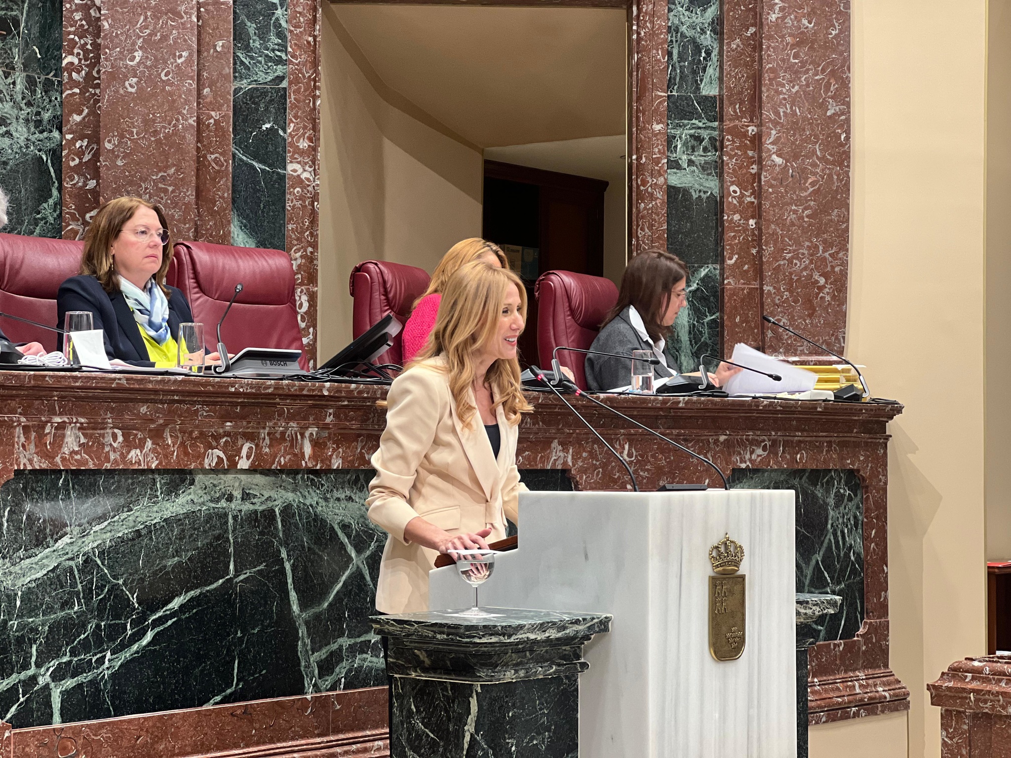 La consejera de Empresa, Empleo y Economía Social, Marisa López Aragón, durante su comparecencia de hoy en la Asamblea Regional
