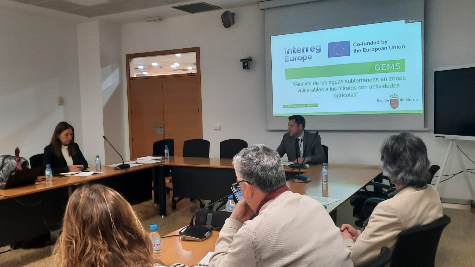 Los grupos de trabajo de la Región de Murcia de los proyectos europeos GEMS y GOV4WATER mantuvieron hoy en un encuentro en el que analizaron los trabajos realizados hasta el momento. “La Región de Murcia participa junto con el resto de los socios europeos en estos proyectos con los que estamos compartiendo experiencias sobre buenas prácticas para la gestión del agua. Además de liderar el GEMS, centrado en la mejora de las masas de agua subterráneas, participamos en GOV4WATER que se centra en la gestión inteligente de los recursos hídricos”, afirmó el director general del Agua, José Sandoval.