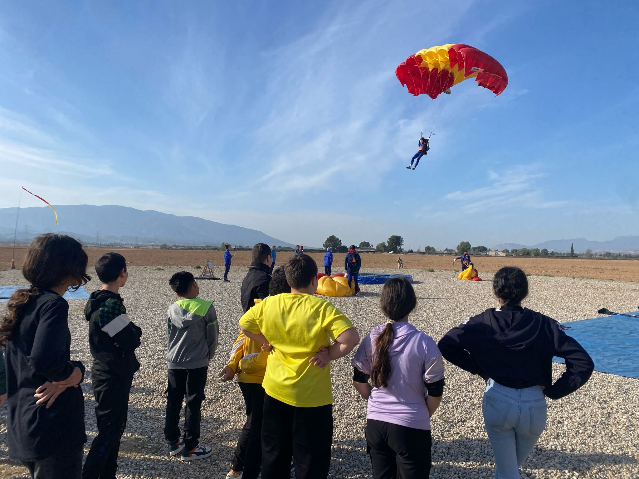 La secretaria general de la Consejería de Educación y Formación Profesional, Carmen María Zamora, visita la Base Aérea de Alcantarilla junto a estudiantes de los colegios Torreteatinos y San José de Calasanz, dentro del programa educativo ‘Pioneros de la aviación’.