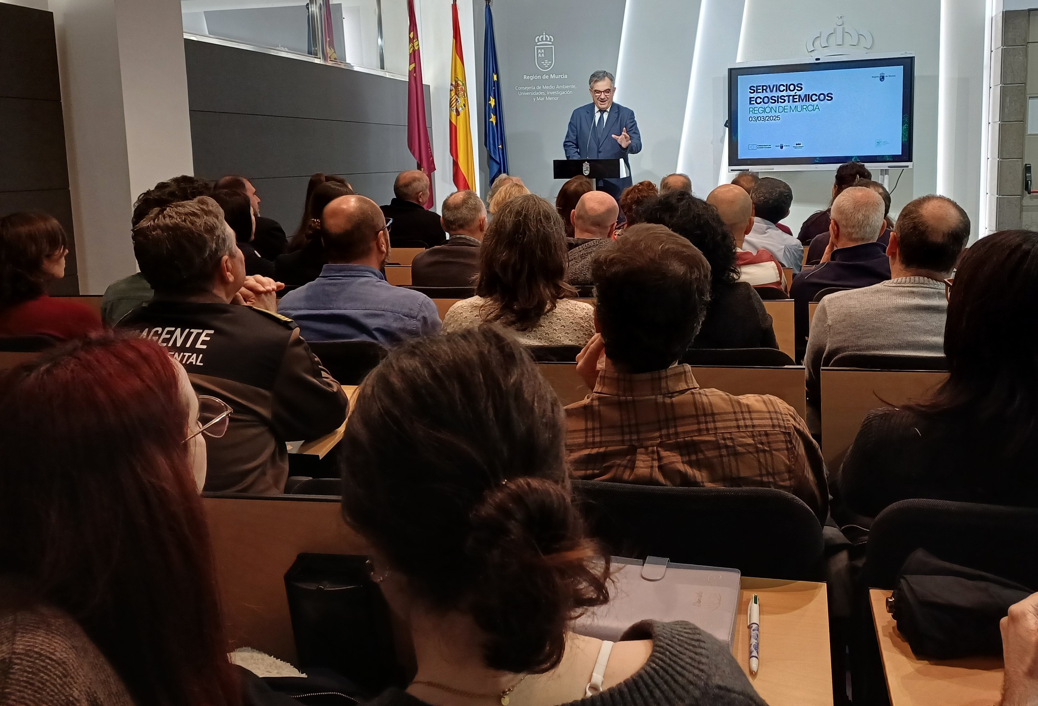 El consejero de Medio Ambiente, Universidades, Investigación y Mar Menor, Juan María Vázquez, durante la presentación de una nueva jornada de 'Espacios y Especies'; una charla sobre ¿Servicios ecosistémicos¿.