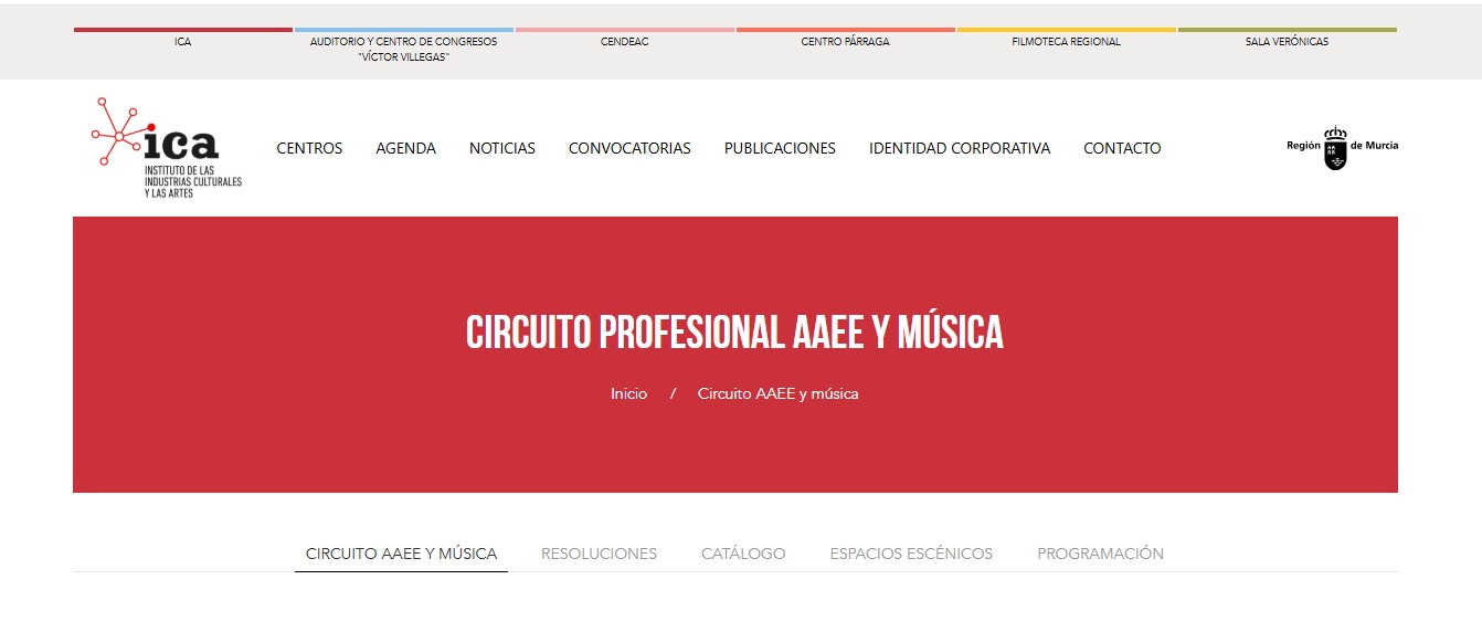 Imagen del apartado en la web del ICA del Circuito Profesional de Artes Escénicas y Música de la Región de Murcia