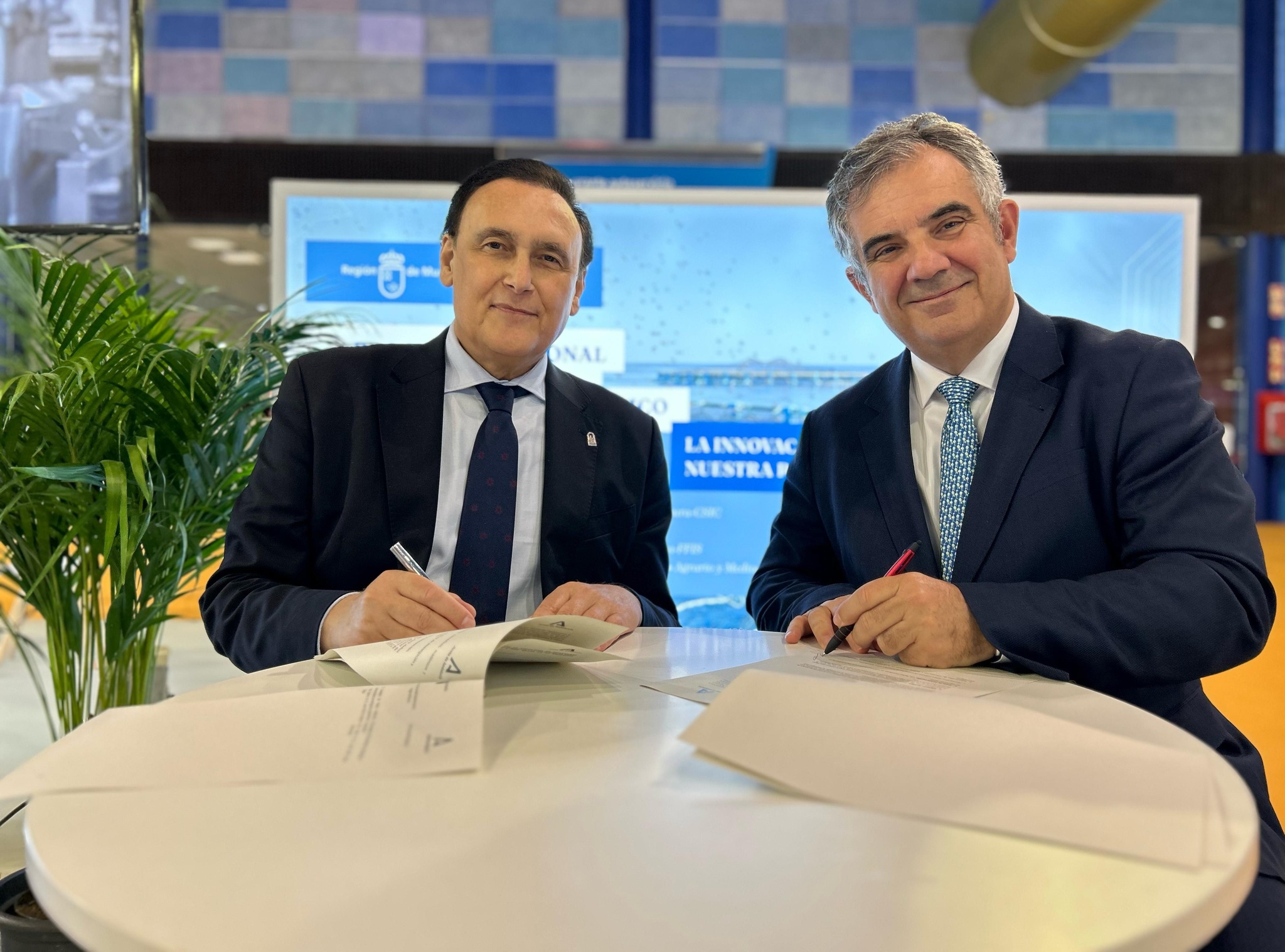 El consejero de Medio Ambiente, Universidades, Investigación y Mar Menor, Juan María Vázquez, y el consejero de Universidad, Investigación e Innovación de la Junta de Andalucía, José Carlos Gómez Villamandos, firman el protocolo.