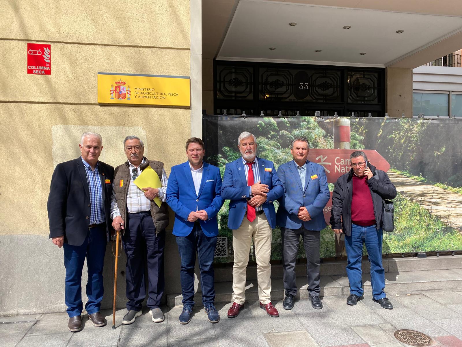 El director general de Producción Agraria, Ganadera y Pesquera, Juan Pedro Vera, junto a los representantes de Fecoam tras la reunión que han mantenido con responsables de Sanidad Vegetal del Ministerio