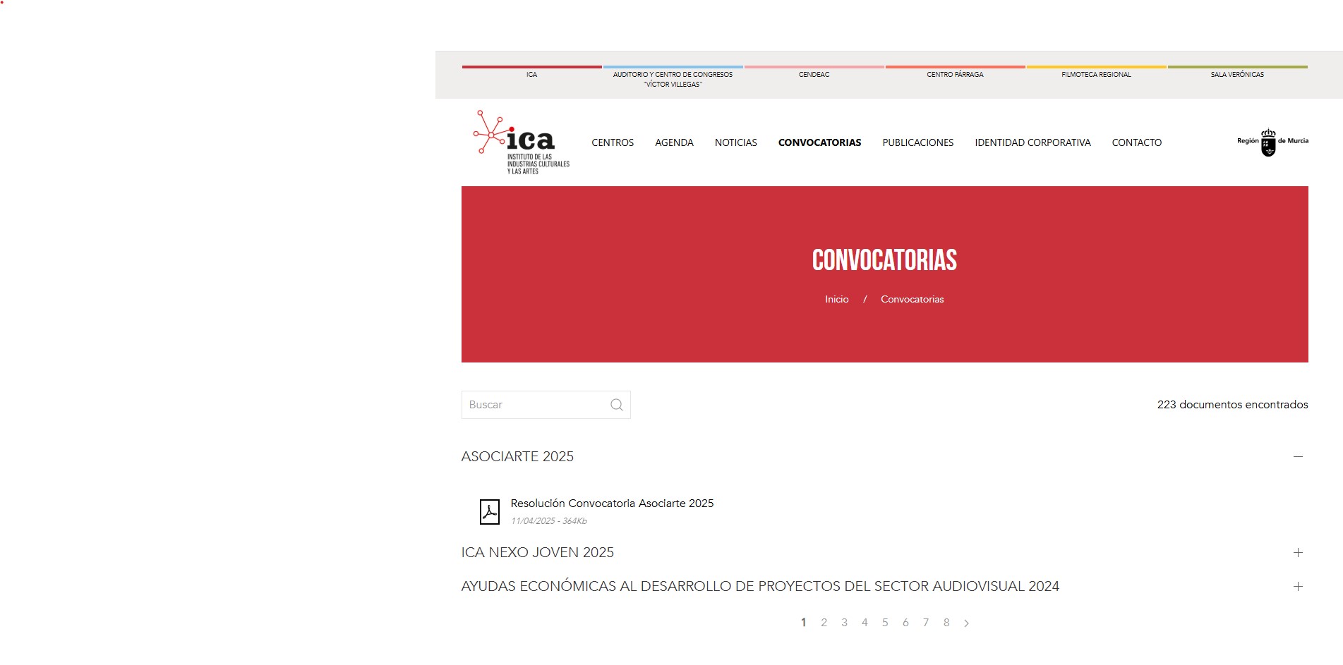 Imagen de la página web de ICA con la convocatoria del 'Plan Asociarte'