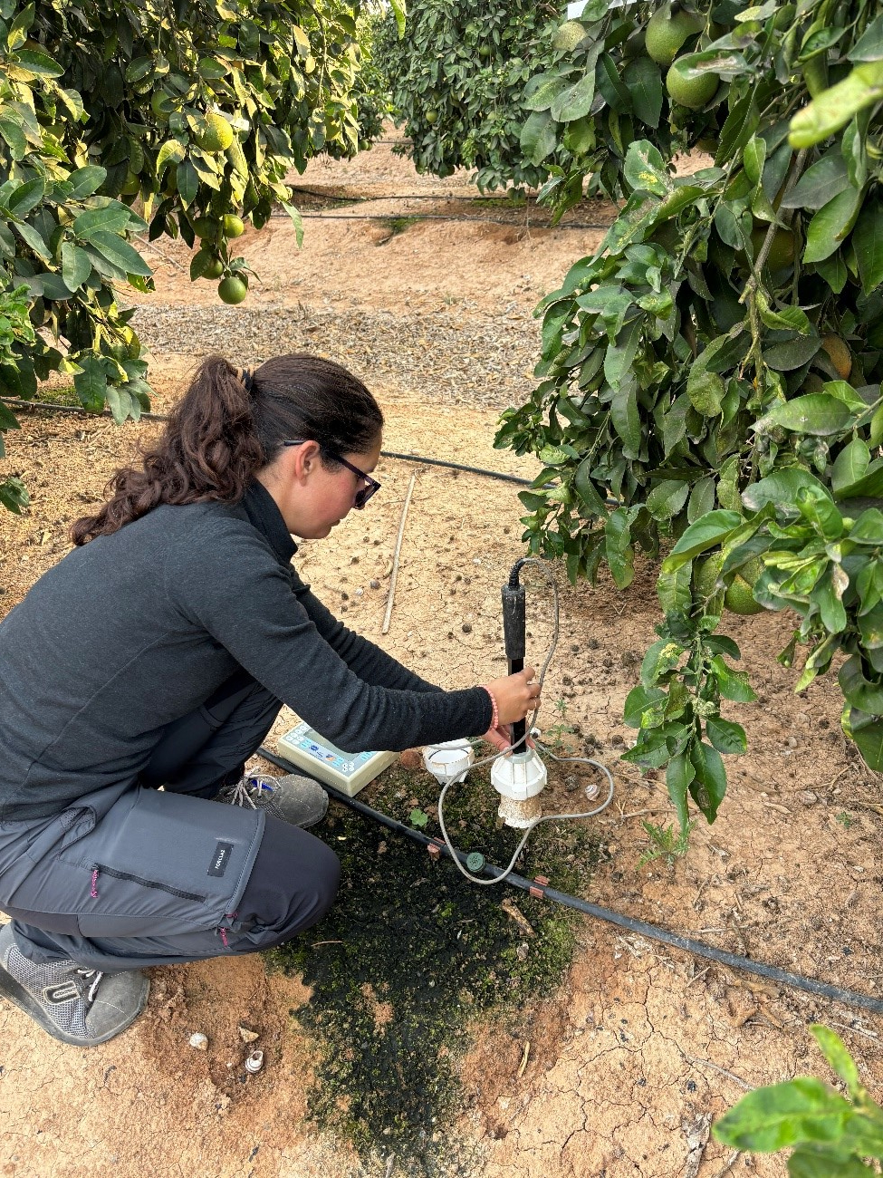 Imagen de la medida de la humedad del suelo durante el ensayo con agentes humectantes