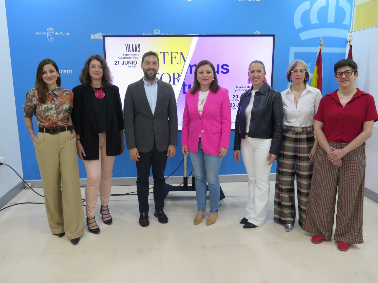 El director del Instituto de Turismo y la alcaldesa de Fortuna, con el resto de participantes en el acto de presentación del evento Tempus Fortuna.