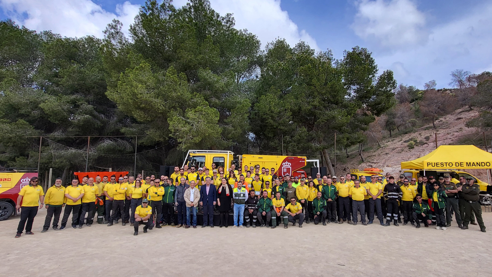 El consejero de Medio Ambiente, Universidades, Investigación y Mar Menor, Juan María Vázquez, junto a integrantes de la Unidad de Defensa Contra Incendios Forestales (UDIF), cuyo Día Internacional del Combatiente de Incendios Forestales se conmemora hoy
