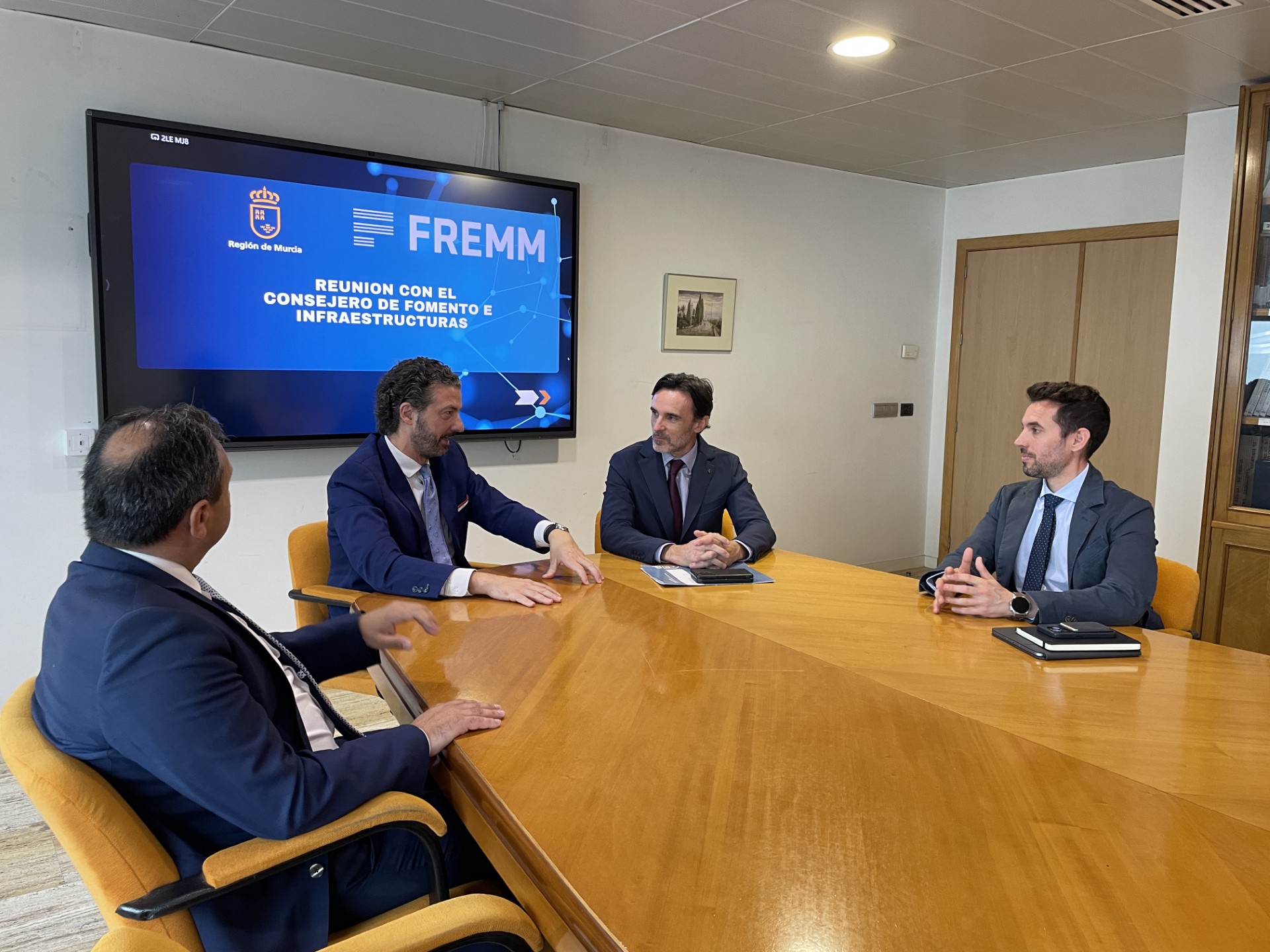 El consejero de Fomento e Infraestructuras, Jorge García Montoro, mantiene un encuentro con el presidente y secretario general de la Federación Regional de Empresarios del Metal de Murcia (FREMM)