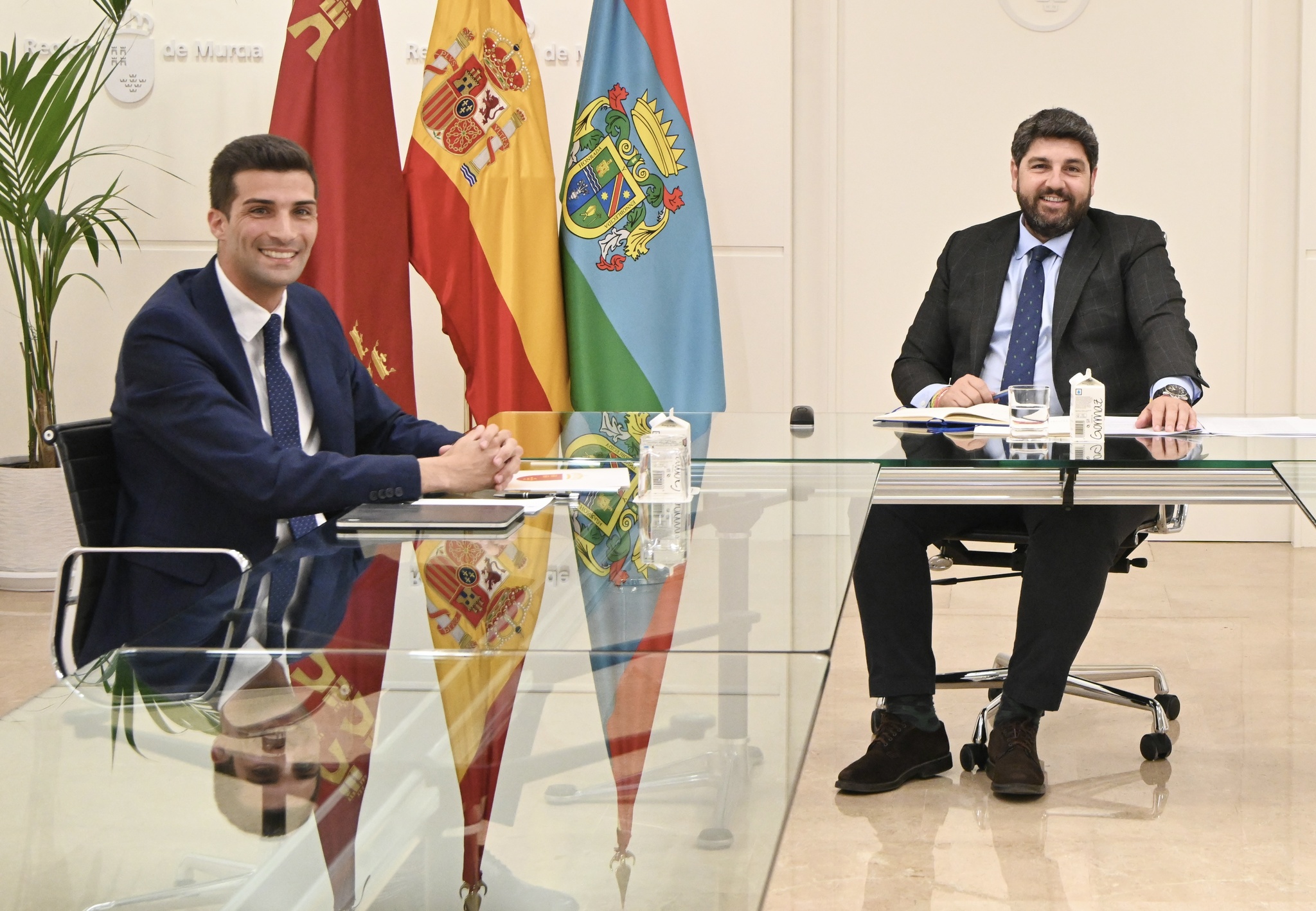El presidente de la Comunidad, Fernando López Miras, se reúne con el alcalde de Alguazas, José Gabriel García, en el Palacio de San Esteban