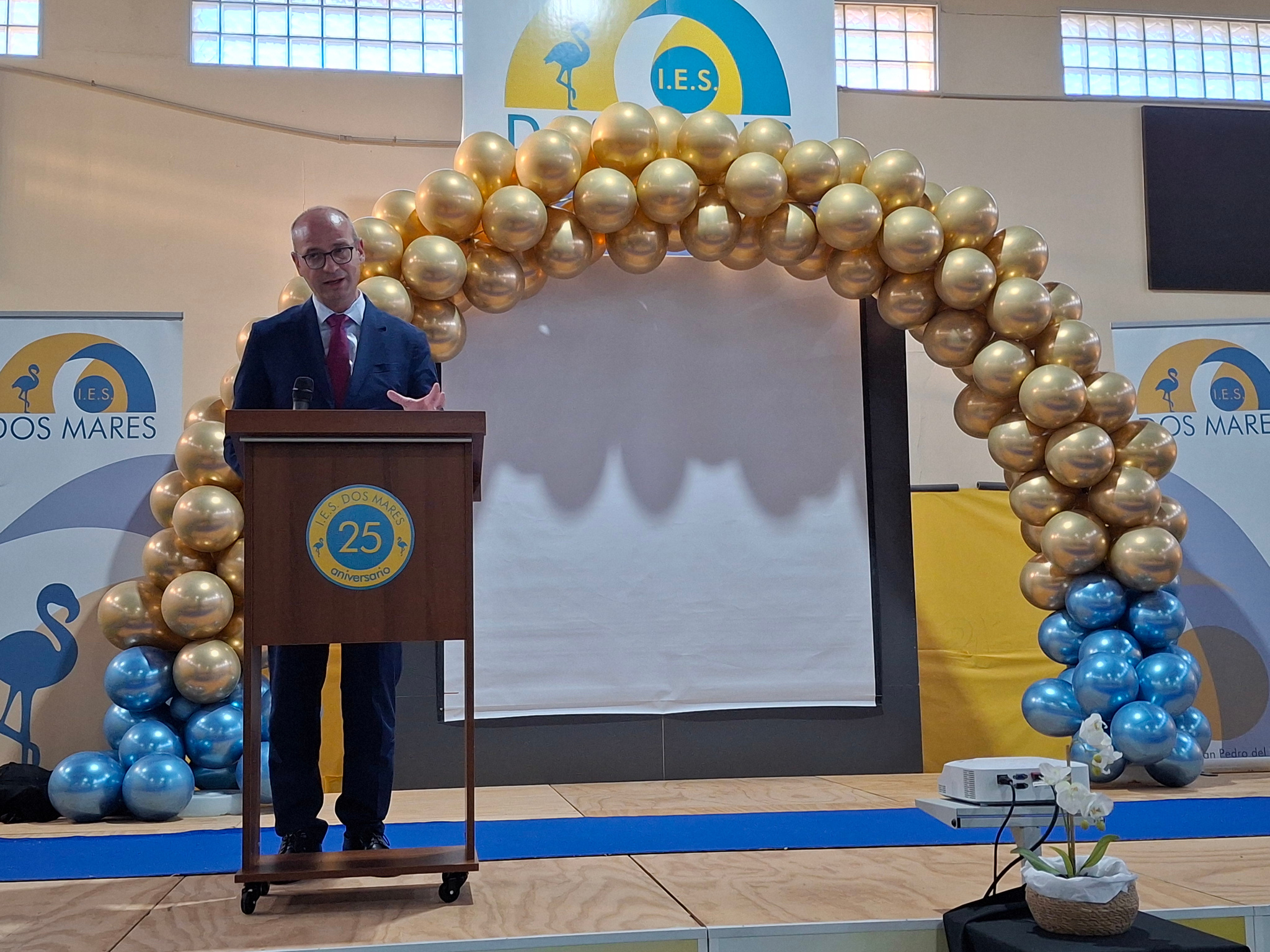 El consejero de Educación y Formación Profesional, Víctor Marín, inauguró el acto recordando que “hace 25 años, en octubre de 1999, los primeros 300 alumnos ocuparon por primera vez las aulas de un centro que se ha convertido en un instituto con altas cotas de excelencia y prestigio, evidentes y aplaudidas en la comunidad educativa de la Región de Murcia”.