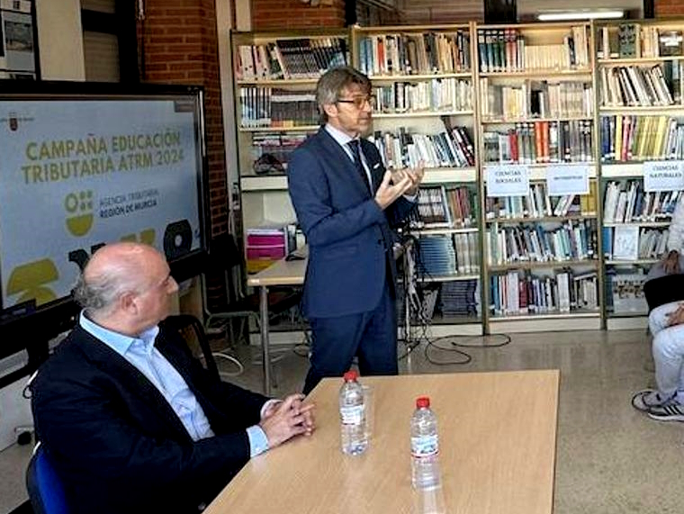 El consejero de Economía, Hacienda, Fondos Europeos y Transformación Digital, Luis Alberto Marín, en una de las charlas sobre educación tributaria.